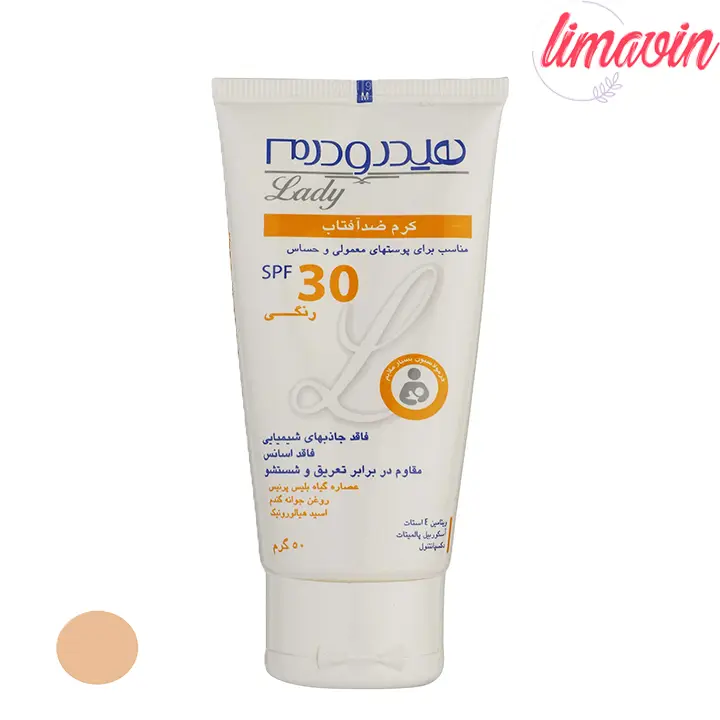 معرفی کرم ضدآفتاب رنگی هیدرودرم مدل SPF30 مناسب پوستهای معمولی و حساس