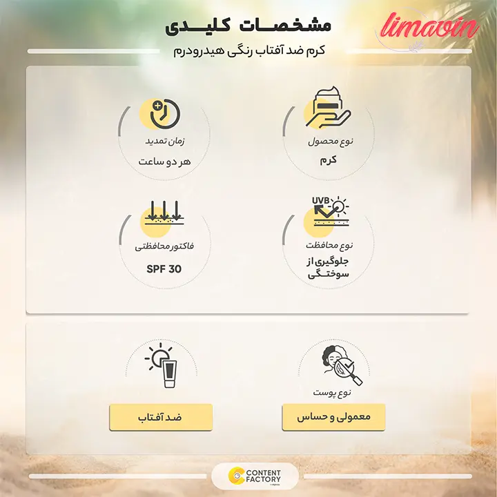 ویژگیهای کرم ضدآفتاب رنگی هیدرودرم مدل SPF30
