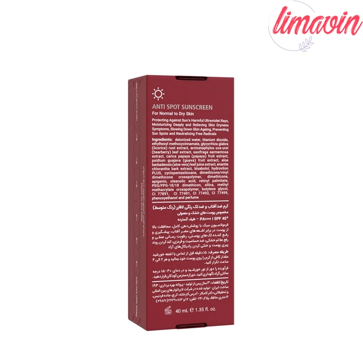 همچنین، این کرم ضدآفتاب و ضد لک، با حجم 40 میلیلیتر، برای استفاده روزانه بر روی پوستهای خشک و معمولی مناسب است. فرمولاسیون آن بهگونهای طراحیشدهاست که علاوه بر حفاظت از پوست در برابر آفتاب، همچنین از تشکیل لکههای رنگی جلوگیری میکند و باعث حفظ تنوع رنگ پوست میشود. بنابراین، با استفاده منظم از این کرم ضدآفتاب، میتوانید از پوستی سالم، تقویت شده و بدون هرگونه علائم آسیب ناشی از تابش آفتاب برخوردار شوید.