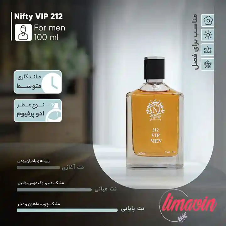 ادوپرفیوم مردانه نیفتی مدل 212 VIP حجم 100 میلیلیتر را میتوانید از فروشگاه اینترنتی Limavin.com با تضمین اصالت کالا، ارسال سریع و بستهبندی ایمن تهیه کنید. اگر بهدنبال عطری خاص، پرانرژی و مدرن هستید که در مهمانیها و جمعهای شبانه بدرخشید، این عطر انتخابی بینقص برای شماست. برای اطلاع از قیمت روز و خرید آنلاین ادوپرفیوم نیفتی 212 VIP کافیست وارد سایت لیماوین شوید و این رایحه منحصربهفرد را به کالکشن عطری خود اضافه کنید.