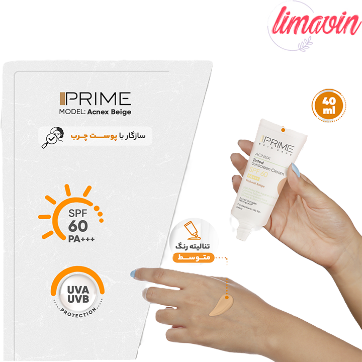 معرفی کرم ضدآفتاب رنگی پرایم مدل Acnex Beige SPF60