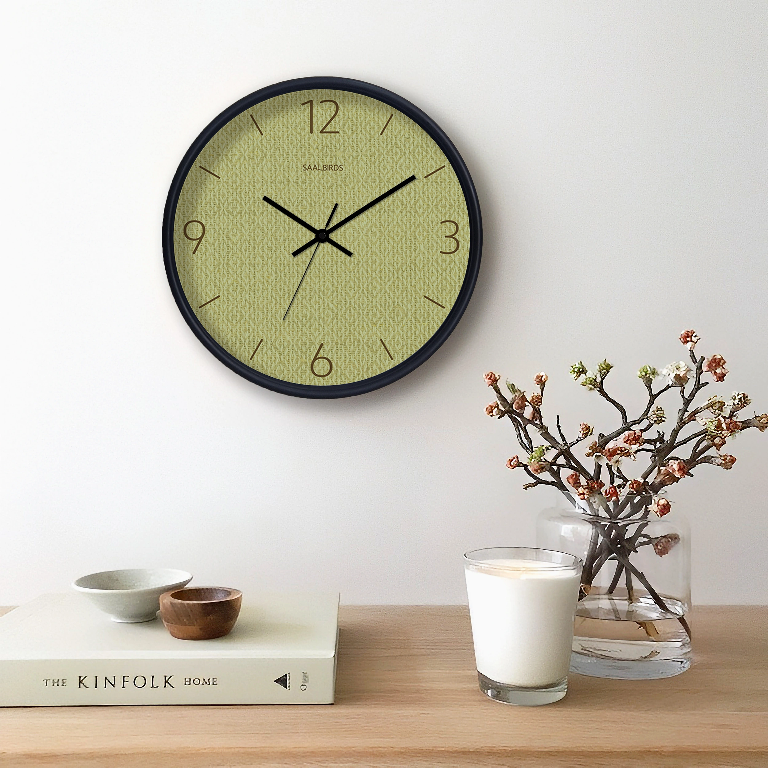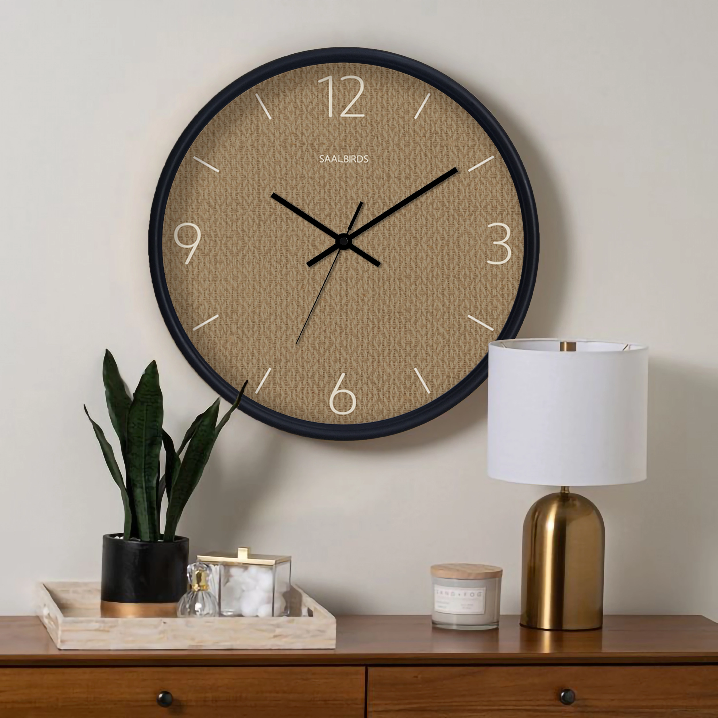 ساعت دیواری سال بردز با صفحهای از بافت گرم و دلنشین، طراحی مدرن را با حسی طبیعی ترکیب کرده است. اعداد و نشانگرهای بزرگ آن، خوانایی بالا و جلوهای زیبا به آن بخشیدهاند. قاب مشکی مینیمال ساعت، این طراحی را تکمیل کرده و آن را به گزینهای مناسب برای دکوراسیونهای کلاسیک و مدرن تبدیل میکند. حضور این ساعت در فضا، علاوه بر کاربردی بودن، حس هماهنگی و آرامش را به محیط میآورد.