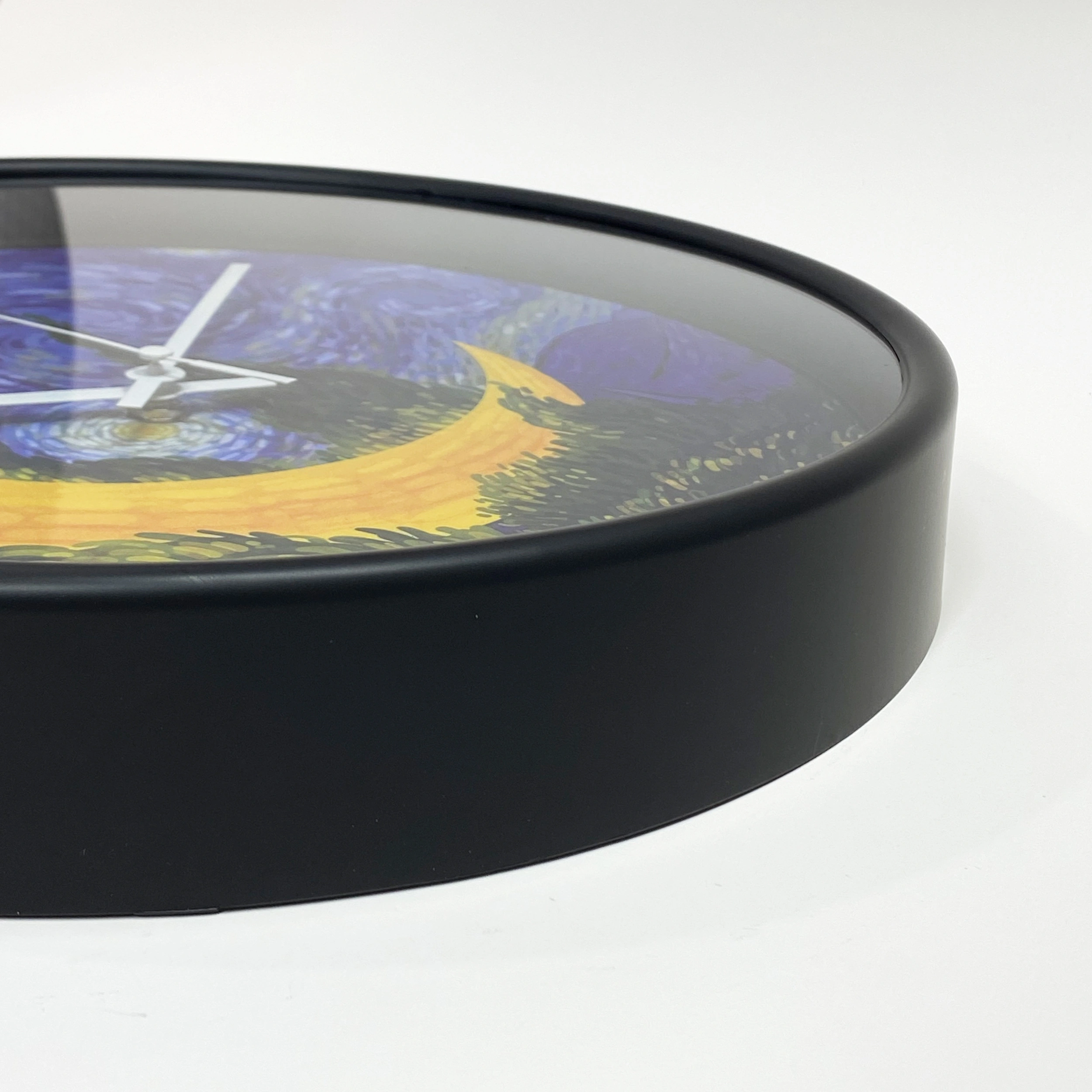 این ساعت دیواری با طراحی خلاقانه و الهام گرفته از نقاشی “شب پرستاره” ونگوگ، ترکیبی هنری از طبیعت و کیهان را به نمایش میگذارد. رنگهای پرجنبوجوش زرد و آبی و آسمانی بیانتها است. این ساعت نه تنها یک وسیله برای نمایش زمان، بلکه یک اثر هنری است که هر بار نگاه کردن به آن، حس آرامش و زیبایی را به ارمغان میآورد. این ساعت برای افرادی که به دنبال تزئینات خاص و الهامبخش هستند، انتخابی بینظیر خواهد بود.