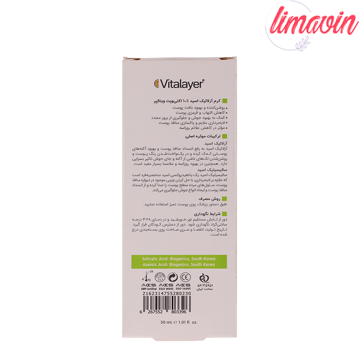 کرم ضد جوش ویتالیر مدل Activit یک محصول تخصصی برای کاهش و درمان آکنه، جوشهای ملتهب و سرسیاه است. این کرم با فرمولاسیون سبک و غیرچرب، به سرعت جذب پوست میشود و با کنترل ترشح چربی، مانع ایجاد جوشهای جدید میگردد. همچنین با ترکیبات ضد التهاب و ترمیمکننده، به کاهش قرمزی و التیام پوست کمک میکند و پوستی صاف و شاداب به شما میبخشد.