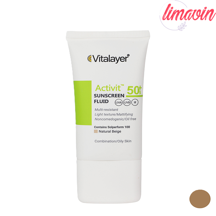 معرفی کرم ضد آفتاب رنگی ویتالیر SPF 50 مدل Activit مناسب پوستهای چرب