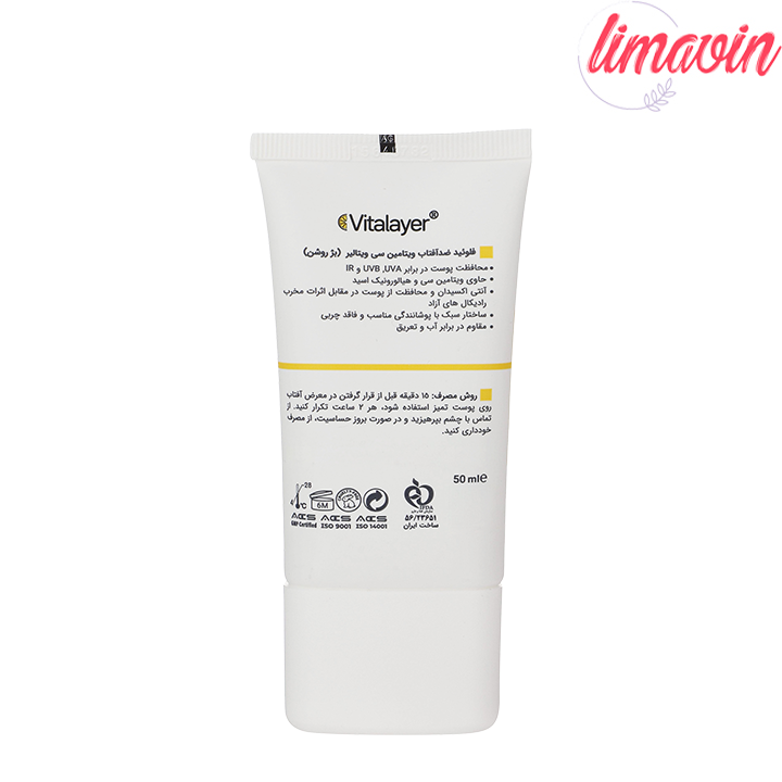 ویژگیهای فلوئید ضدآفتاب رنگی ویتالیر SPF 50 مدل Vitamin C