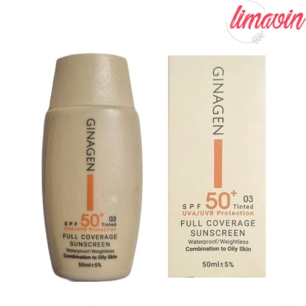 کرم ضد آفتاب رنگی ژیناژن SPF 50 مدل 01 مناسب پوستهای چرب و مختلط حجم 50 میلیلیتر